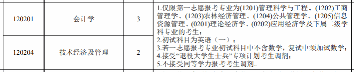 4.调剂120201会计学、120204技术经济及管理考生若一志愿报考专业初试科目中不含数学,复试中须加试数学;