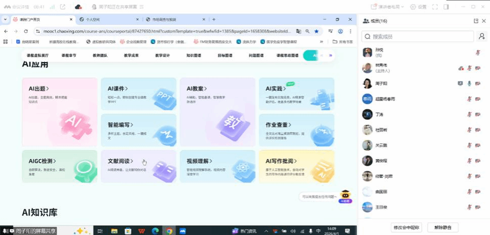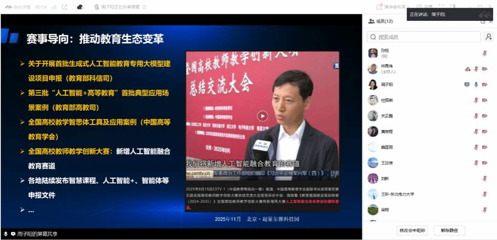培训过程中,主讲人结合实际教学场景,生动演示了多维图谱构建、专属知识库搭建的具体方法,讲解了AI助教、知识图谱、任务引擎等工具的操作技巧,重点展示了AI在资源建设、实践教学、学情分析等环节的应用场景。让参会教师直观感受了智慧技术对教学流程的重构与优化,对智慧课程建设的实操路径有了清晰认知。