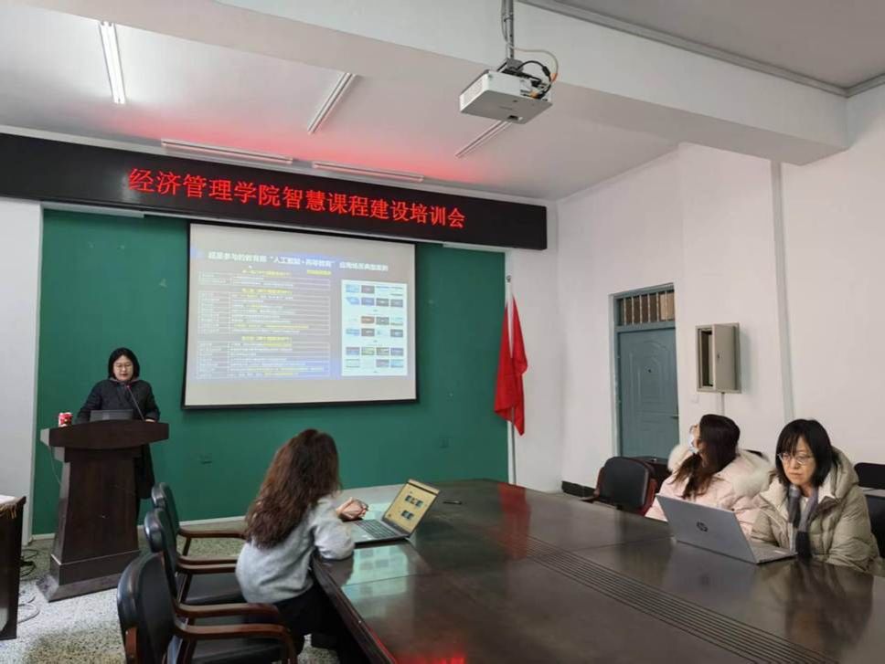 为落实学校教育教学高质量发展要求,深入推进智慧课程建设,强化AI技术在教学全流程的融合应用,切实提升教师信息化教学能力,经济管理学院于2026年3月20日和2026年4月1日分别举办了线上和线下两场智慧课程建设与AI教学应用专题培训会,由学习通专业技术人员主讲,学院各专业负责人及专任教师参与了相关的培训。